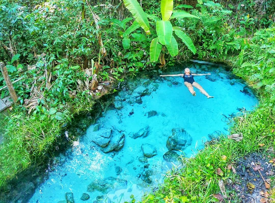 Это один из тех оазисов, которые вырастают посреди саванны с красной землей. При входе в лагуну вас встречают мелкие рыбки, которые то и дело щекочут вас. До входа в пещеру, где самая голубая и сверхпрозрачная вода, можно проплыть самостоятельно около 3 минут или отправиться на маленькой лодке, заодно устроив фотосессию.